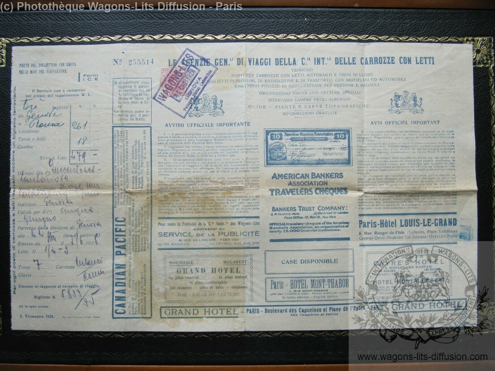 In this section, you will find a selection of paper archives from CIWL and PLM SA, digitalised for the Data Base of Archives of Wagons-Lits Diffusion.