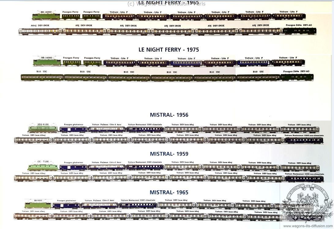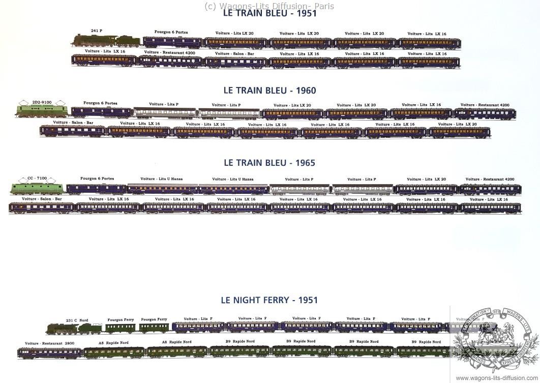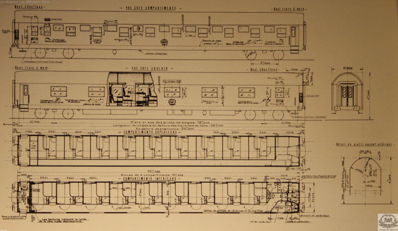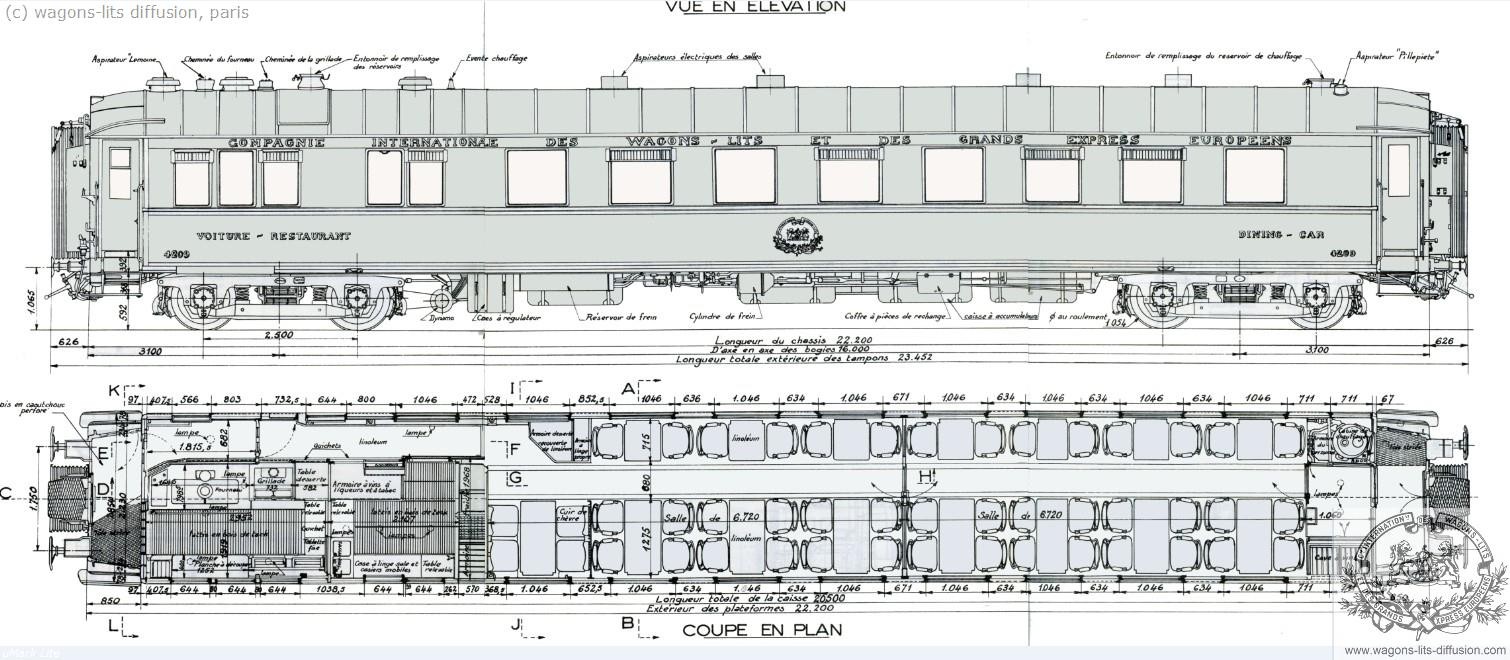 We dispose of good plans of most sleeping cars (VL), restaurant cars (VR), pullman salon cars and luggage cars, teak or metal coaches.