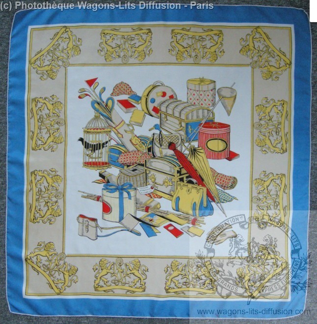 Wl foulard compagnie internationale wagons lits 1950 vintage soie 1